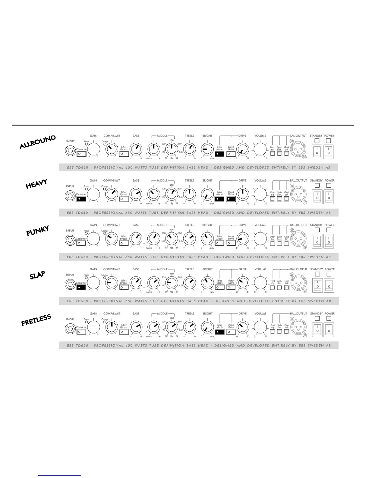 EBS TD650 - Sample Sound Settings; Allround; Heavy; Funky