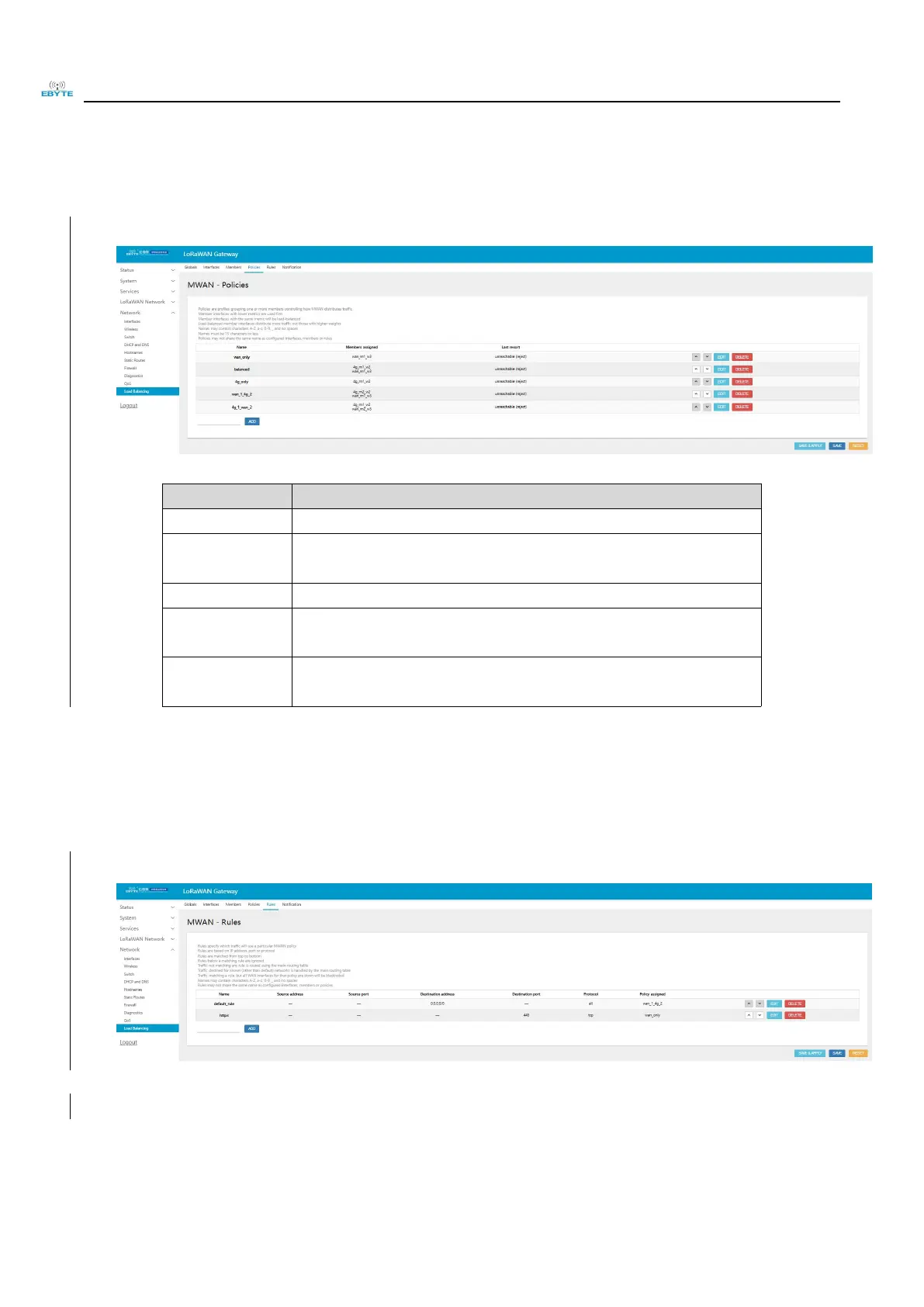members will be allocated more traffic. The device defaults to five policies, as shown in the diagram below.