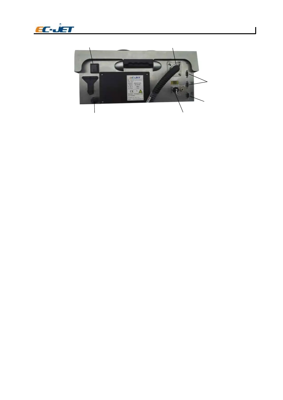 The above illustration shows the rear of the EC-JET with all available connections.