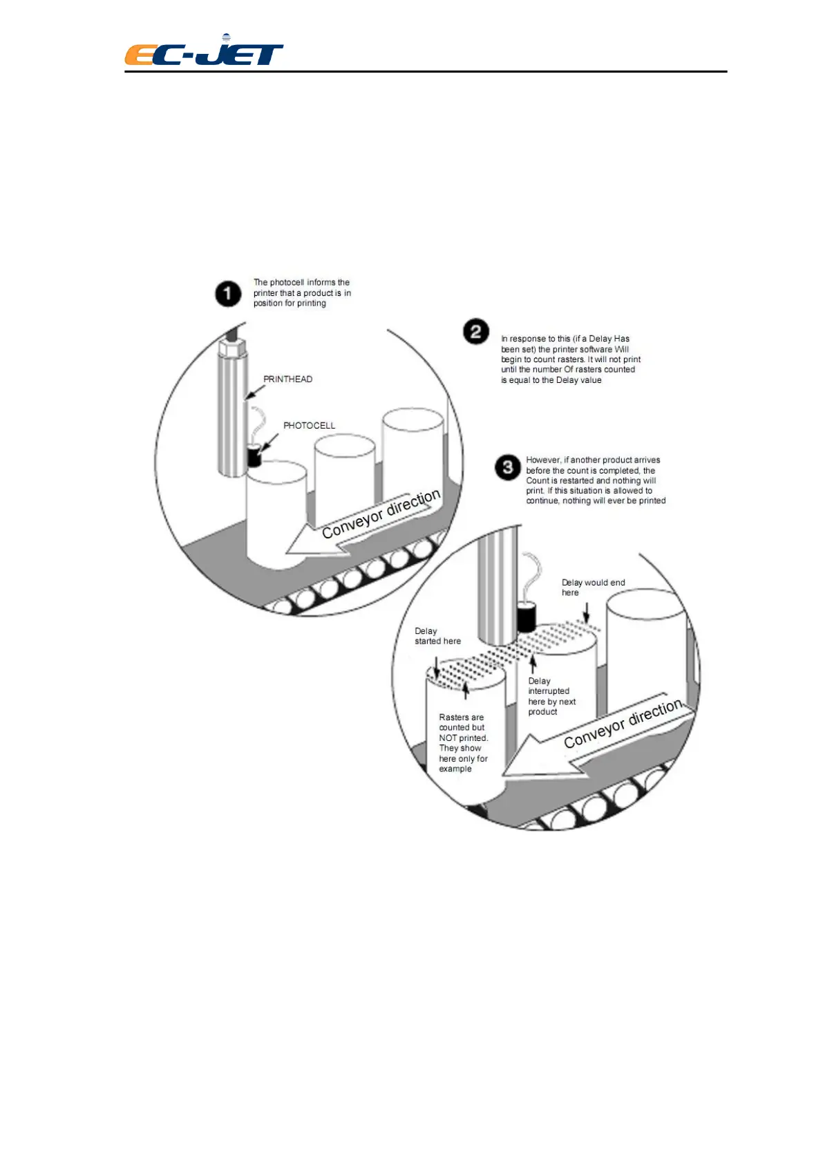 If the message to be printed is too long for the product or the conveyor is travelling faster than the system