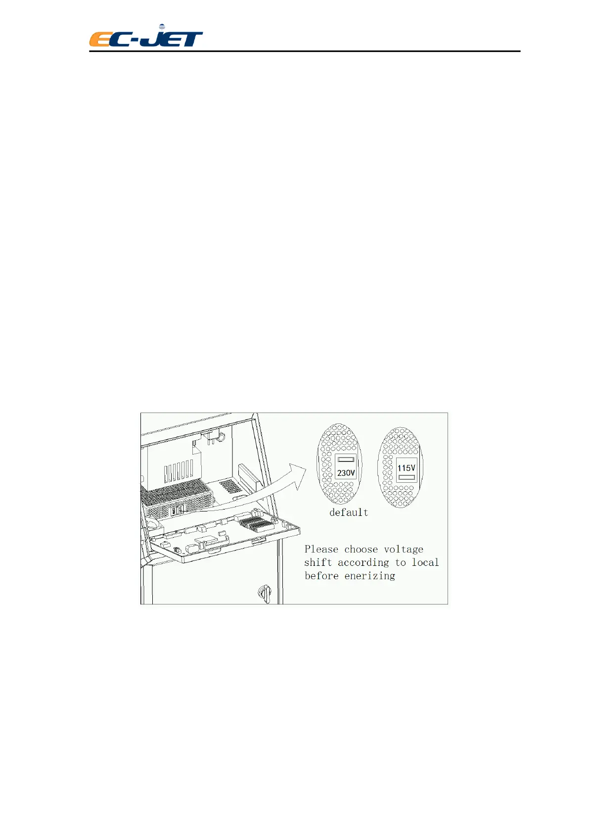 EC-JET printers can be fit to a single-phase 50/60 Hz AC power supply of 115V or 230 V.