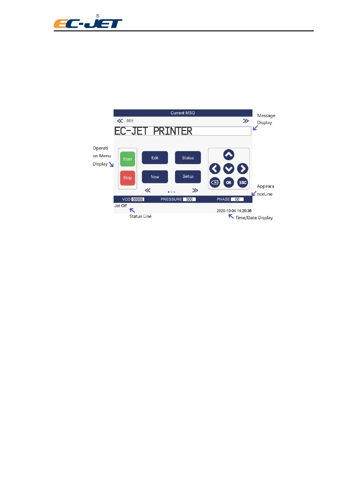 This part of the display area is used for displaying, creating and editing messages to be printed.