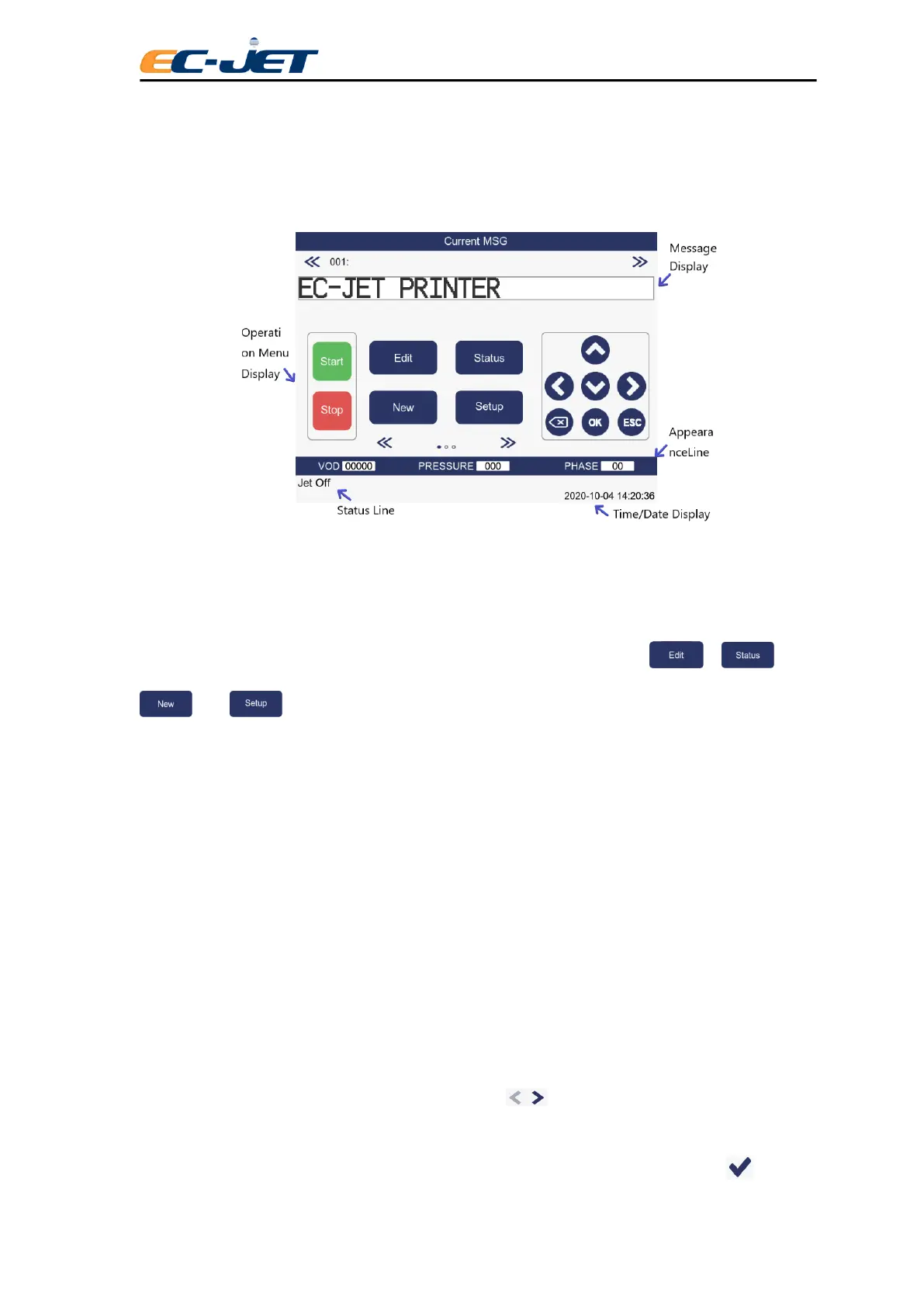 The CURRENT MESSAGE screen is the first to be displayed after the start up procedure has been
