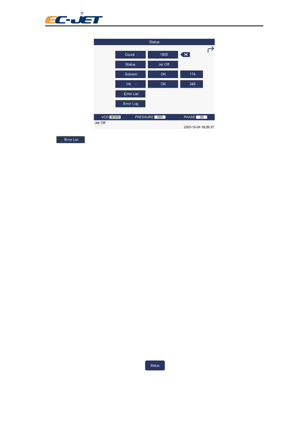 The ink and solvent levels should show OK. If not, they must be refilled with the correct ink or solvent.