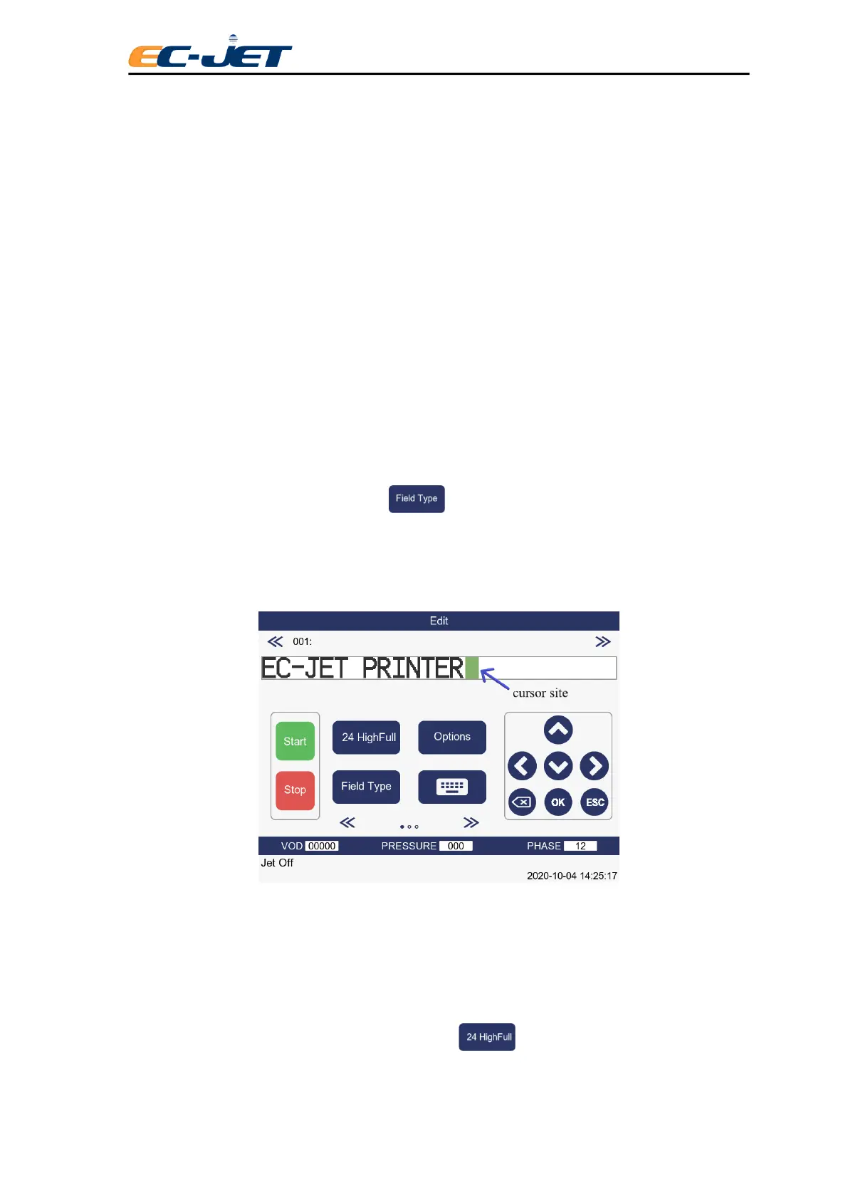 Before creating a field, the character height of the field must first be set by choosing the character type