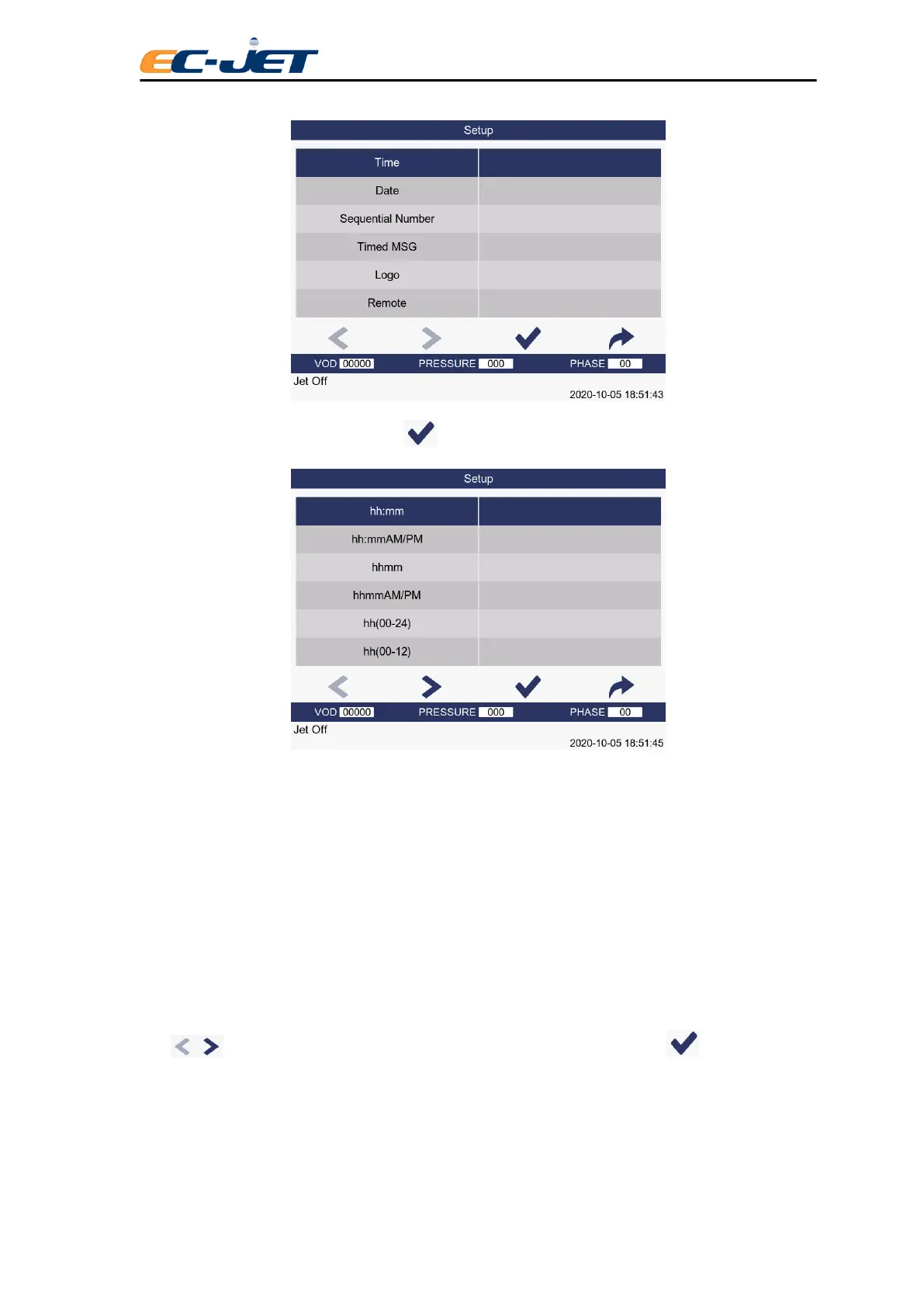Use keys to locate the desired format, in this case hh:mm, and press the key to select