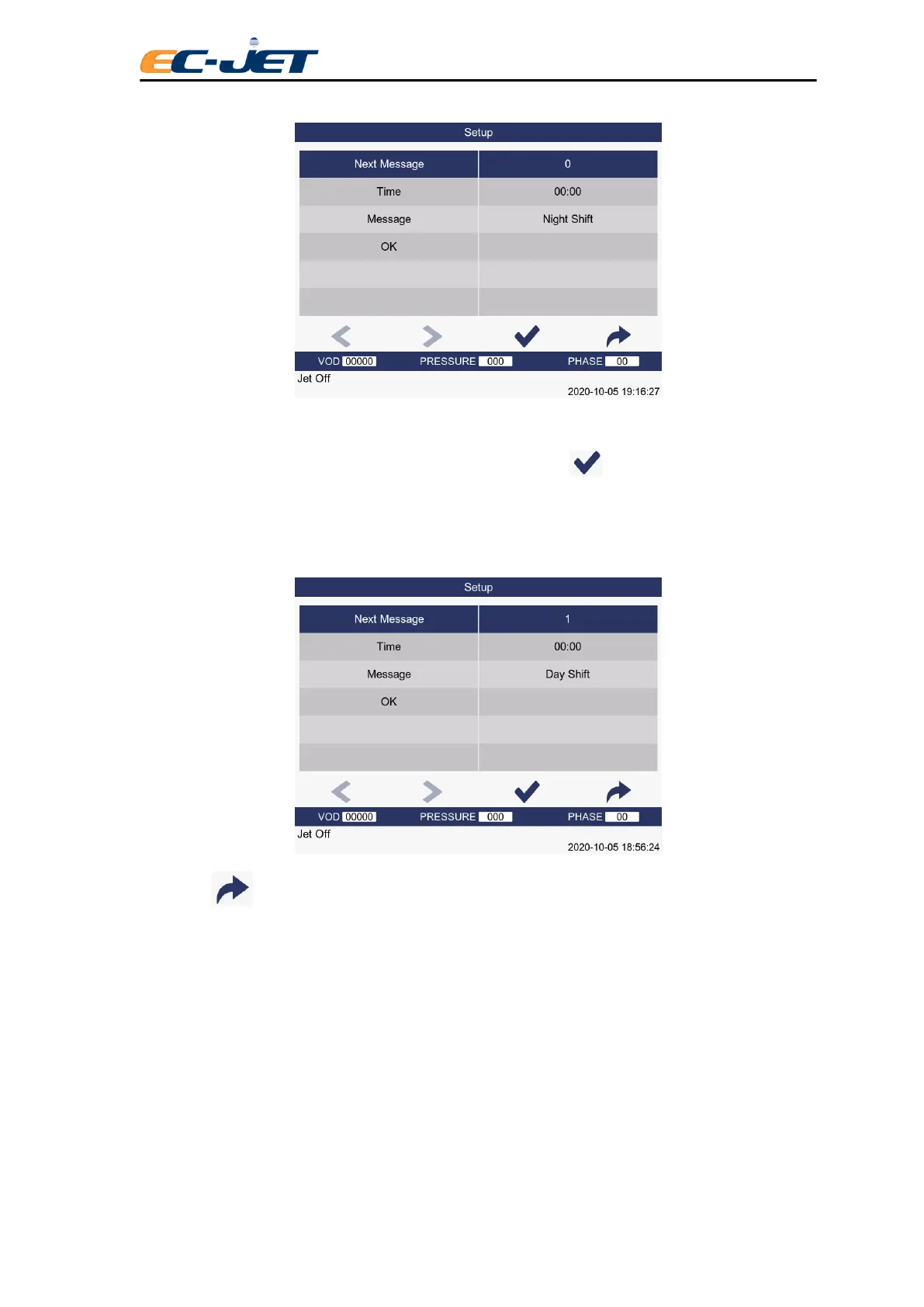 Now create the “Day Shift” timed message by using the menu cursor to locate and change the options: