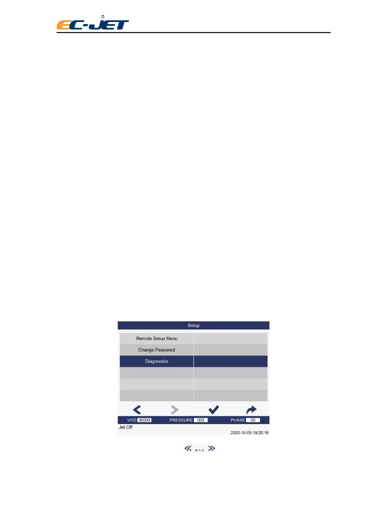 Entry to the DIAGNOSTICS menu is made by using the up/down arrow keys to locate the Diagnostic
