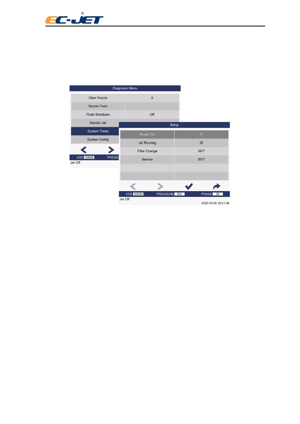 the jet has been running. When the value is less than 0, Service Time warning will be alarmed.