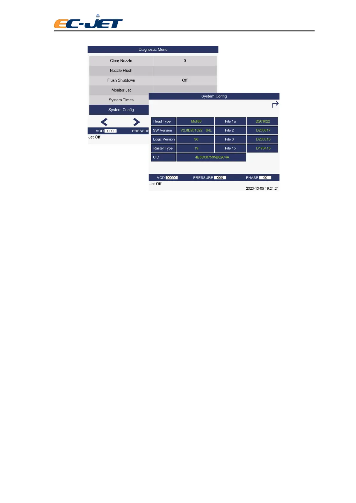 4. Use Quick Start Jet to try and obtain VOD measurements and ascertain if ink is thick or thin.
