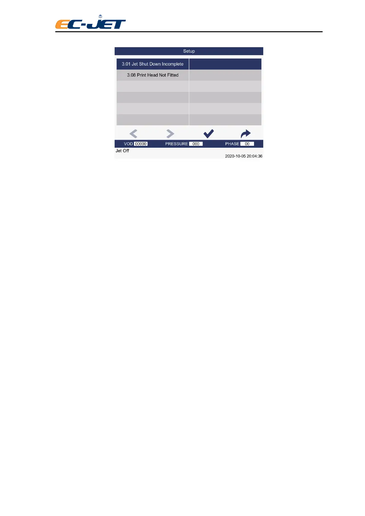 This indicates that the printer was previously switched off while the jet was running or before the printer