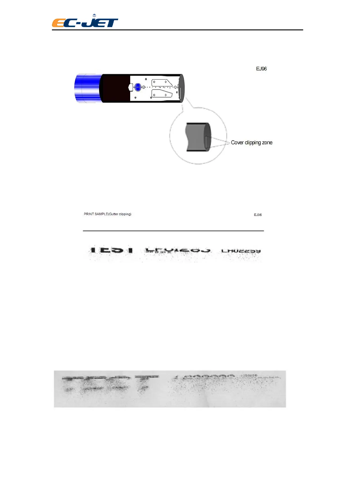 top or the bottom of the print is missing, a typical result of print head cover catch is a fine diffuse spray of