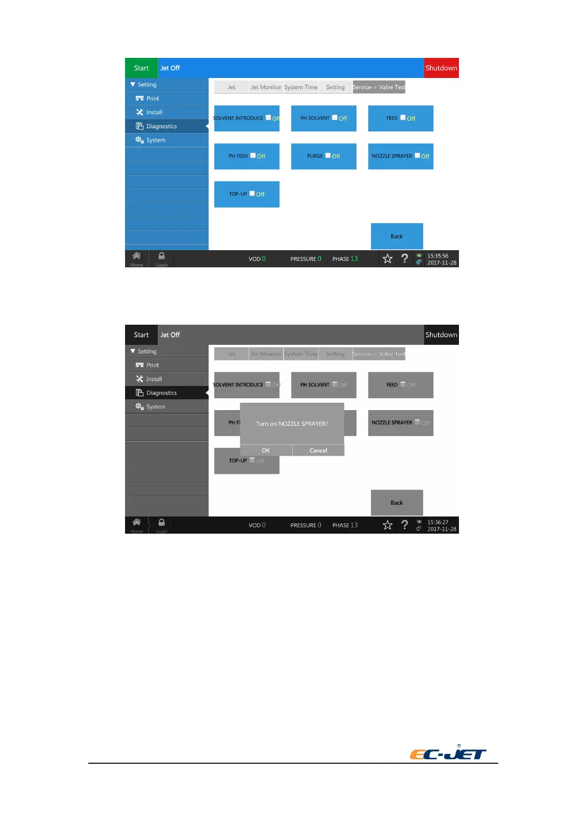 printhead cleaning valve. Please wear the protective equipment. Pay attention to fire safety.