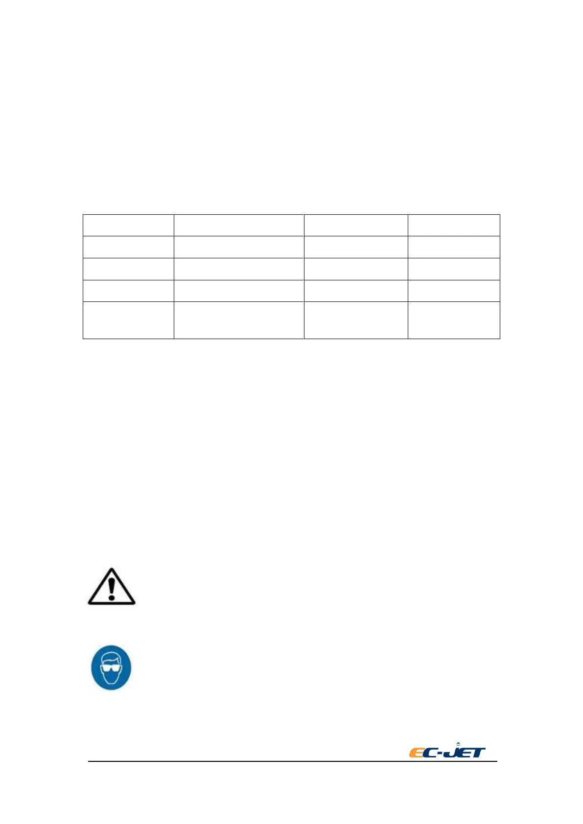 CAUTION: USE ONLY EC-JET SOLVENT. ENSURE THAT THE SOLVENT
