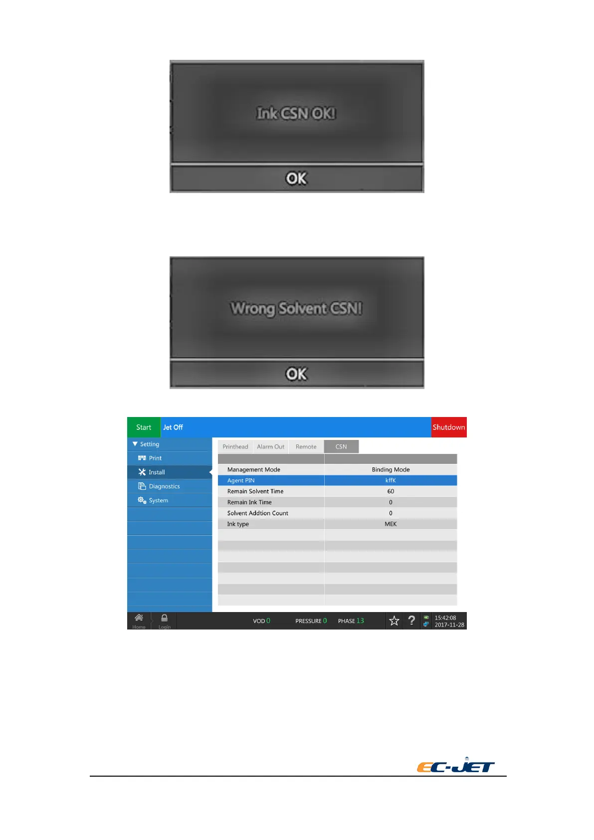 Note2: You can see the remaining time of ink or solvent on “install: consumable” interface.