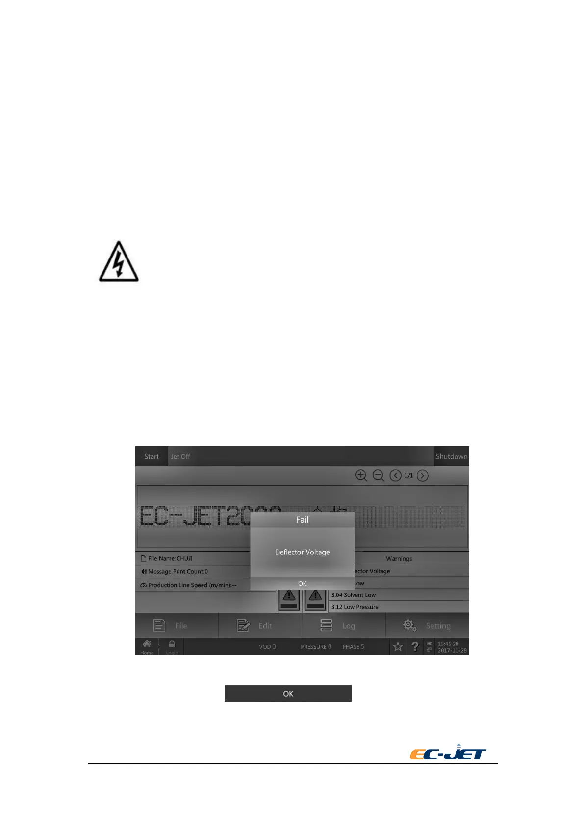When a Print Failure occurs a message is displayed on the screen status line and a jet shutdown