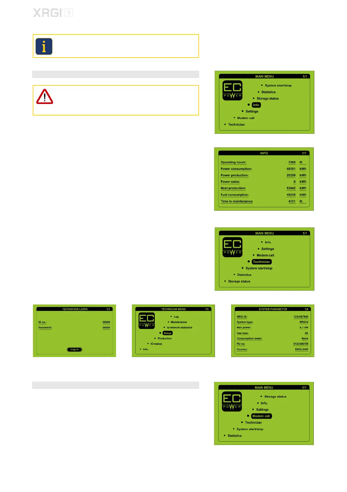 system. Please refer to the main menu under Info and in the