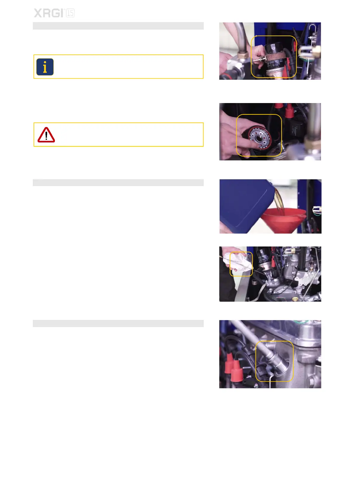 Add oil to the engine. Fill a maximum of 30 litres of oil through the filler neck.