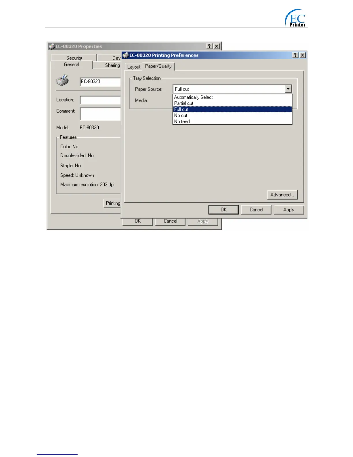 The following condition may cause the printer can’t cut paper properly in Win2000/XP (or updated