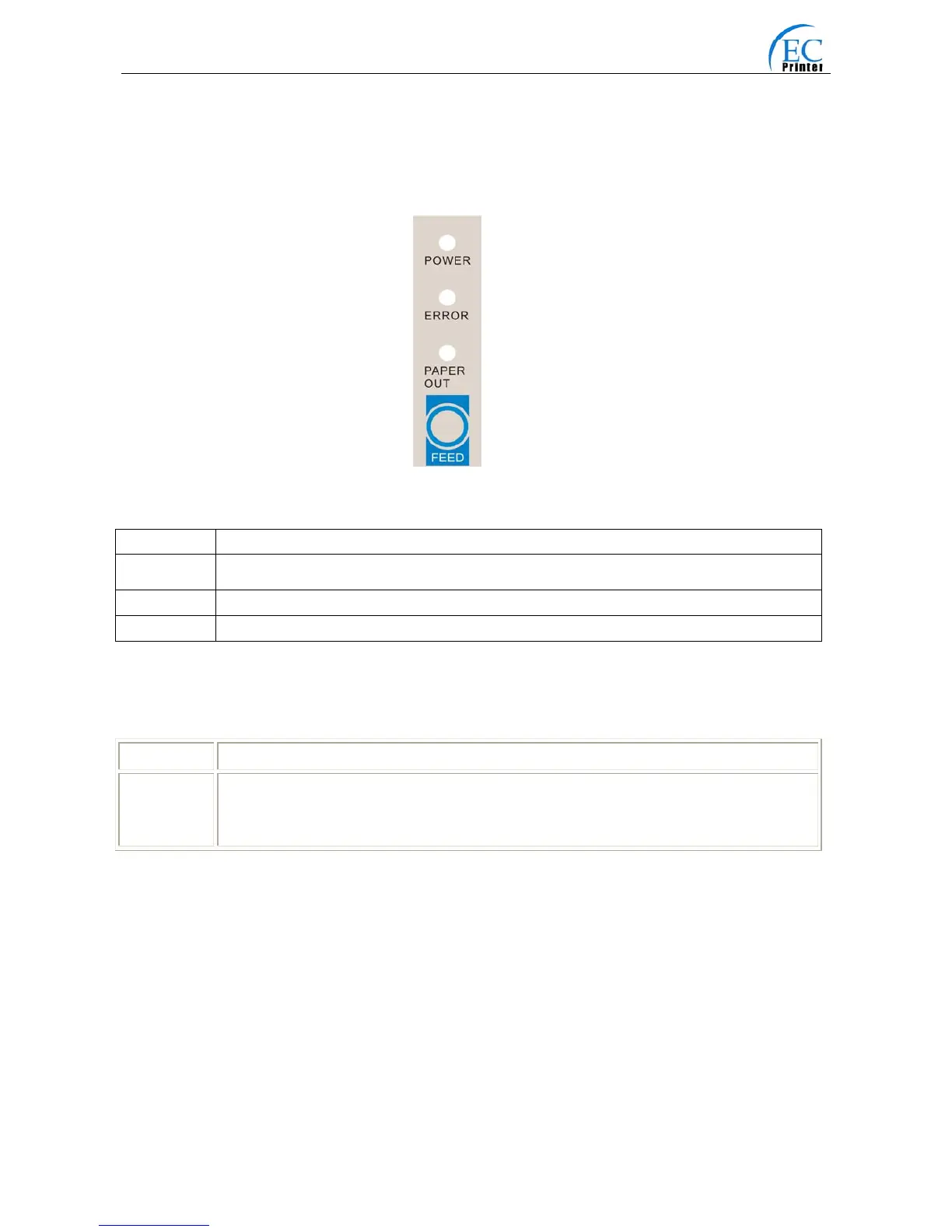 PAPER OUT Indicate printer’s paper state. The indicator is on when paper end or near end.