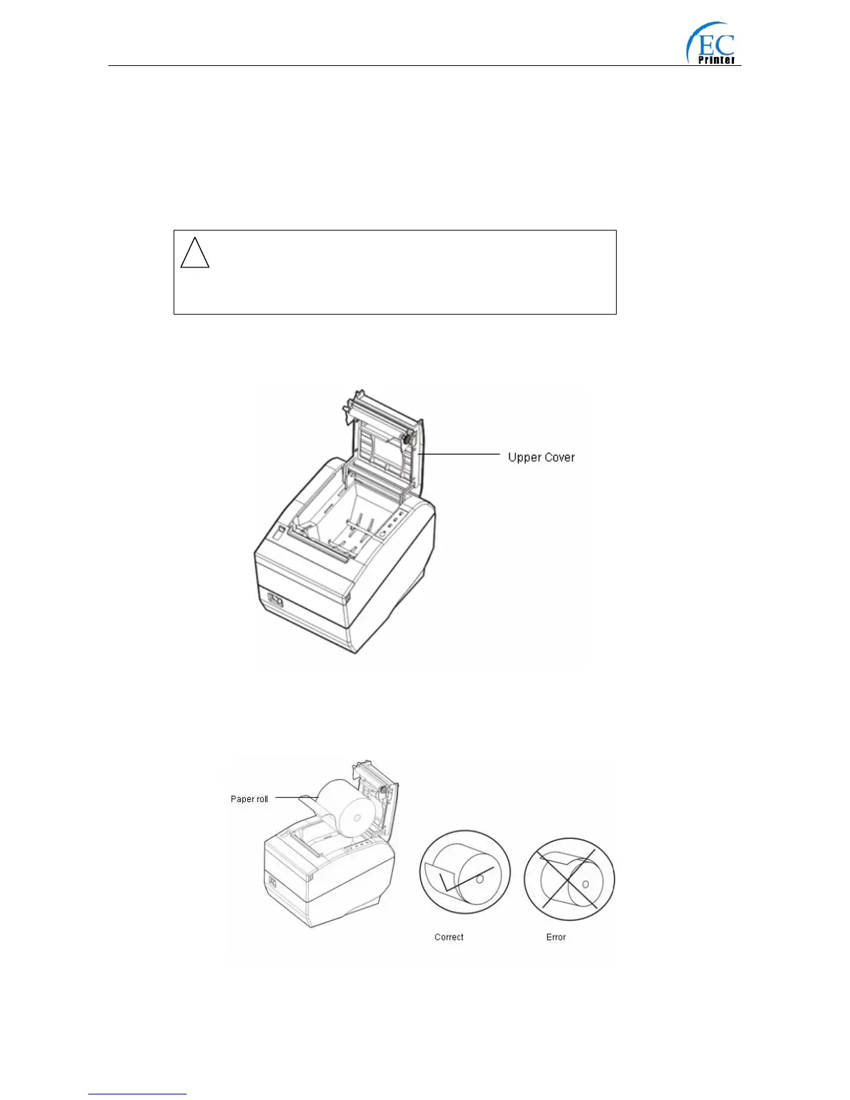 2. Insert the paper roll as shown below(Be sure to note the correct direction that the paper comes