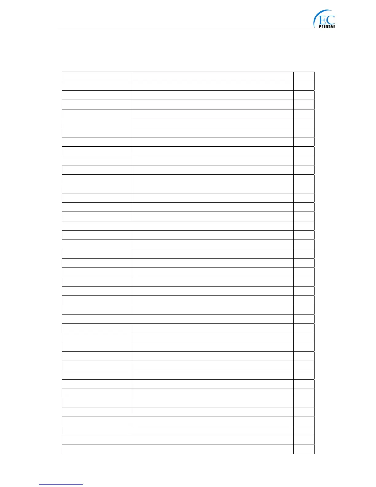 Here list the commands supported in the printer in alphabetical order.