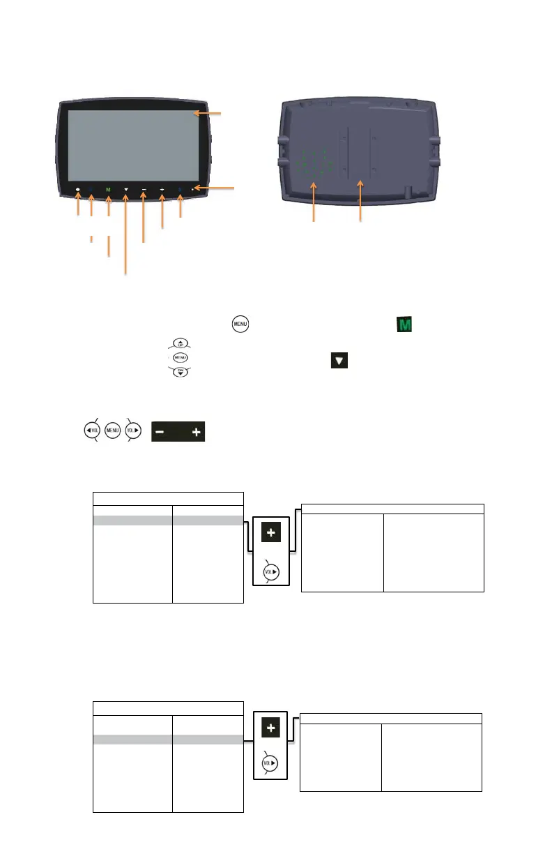 Down on the remote control or the – buon on the monitor screen to go back to the previous menu.