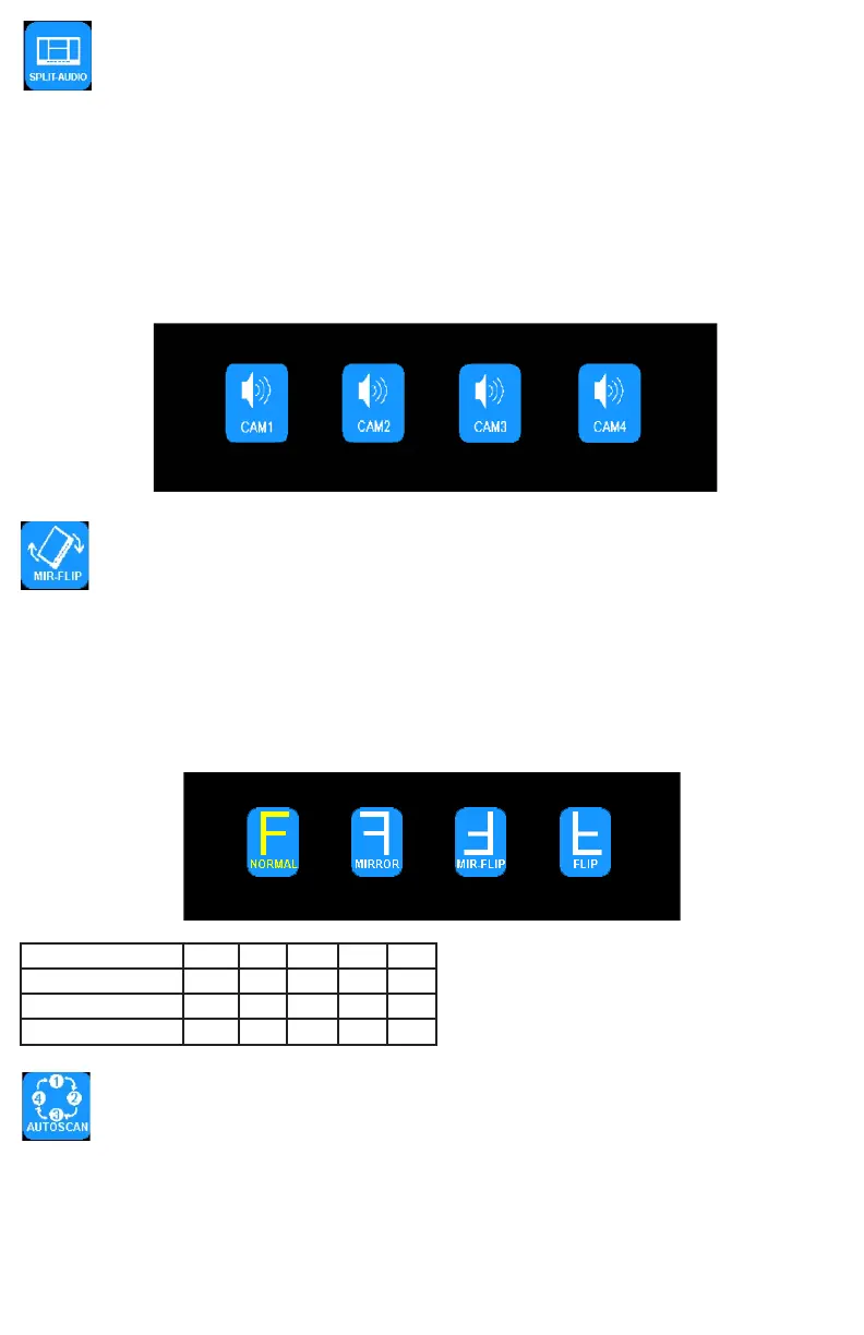 mehrere Kamera(s) im Menü AUTOSCAN auf ON (EIN) gestellt sind. Nach der Aktivierung erfolgt AUTOSCAN als zusätzlicher Bildmodus zwischen den Bildmodi