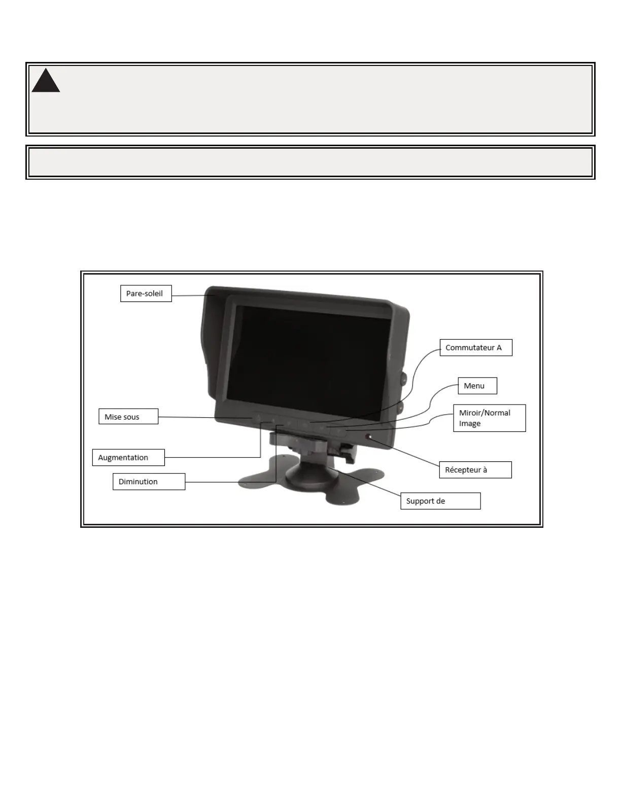 Pour éviter les chocs accidentels, N'OUVREZ PAS LE BOÎTIER DU MONITEUR. Sinon, l'intérieur du moniteur