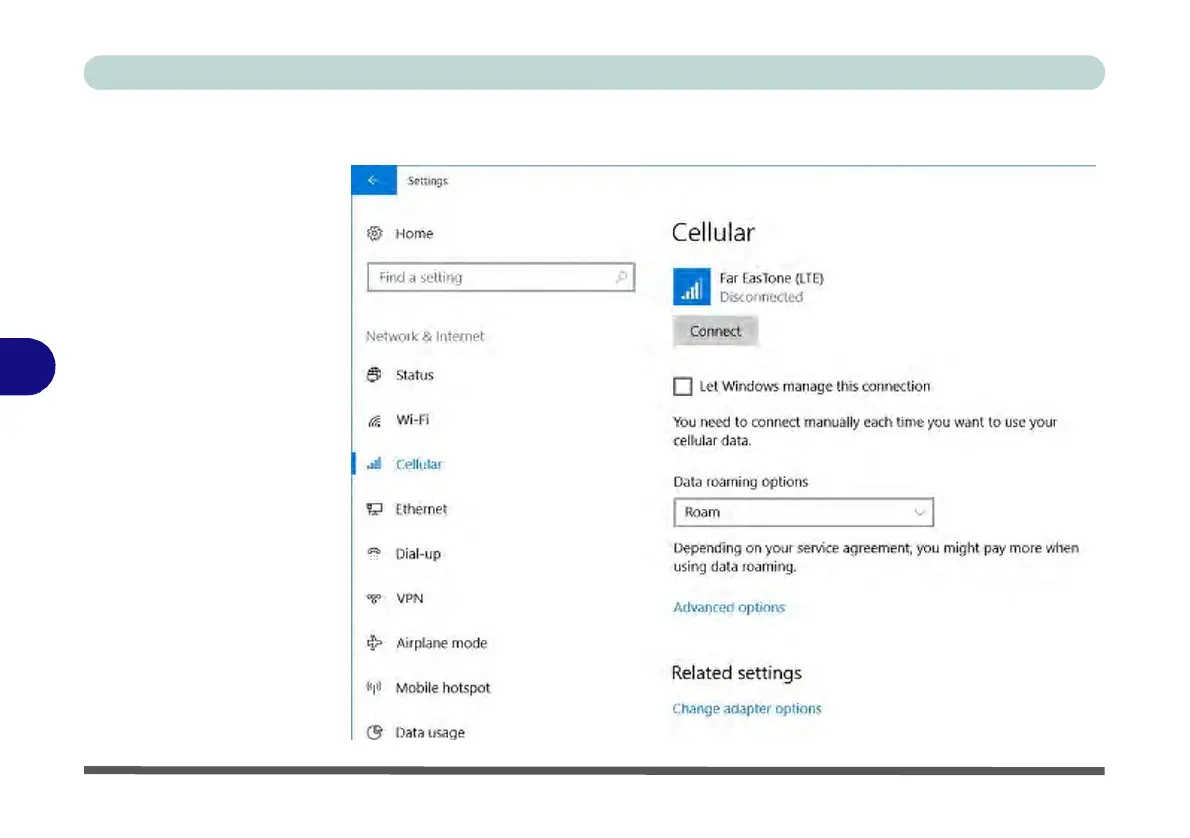 Cellular in Network & Internet in Windows Settings will allow you to access