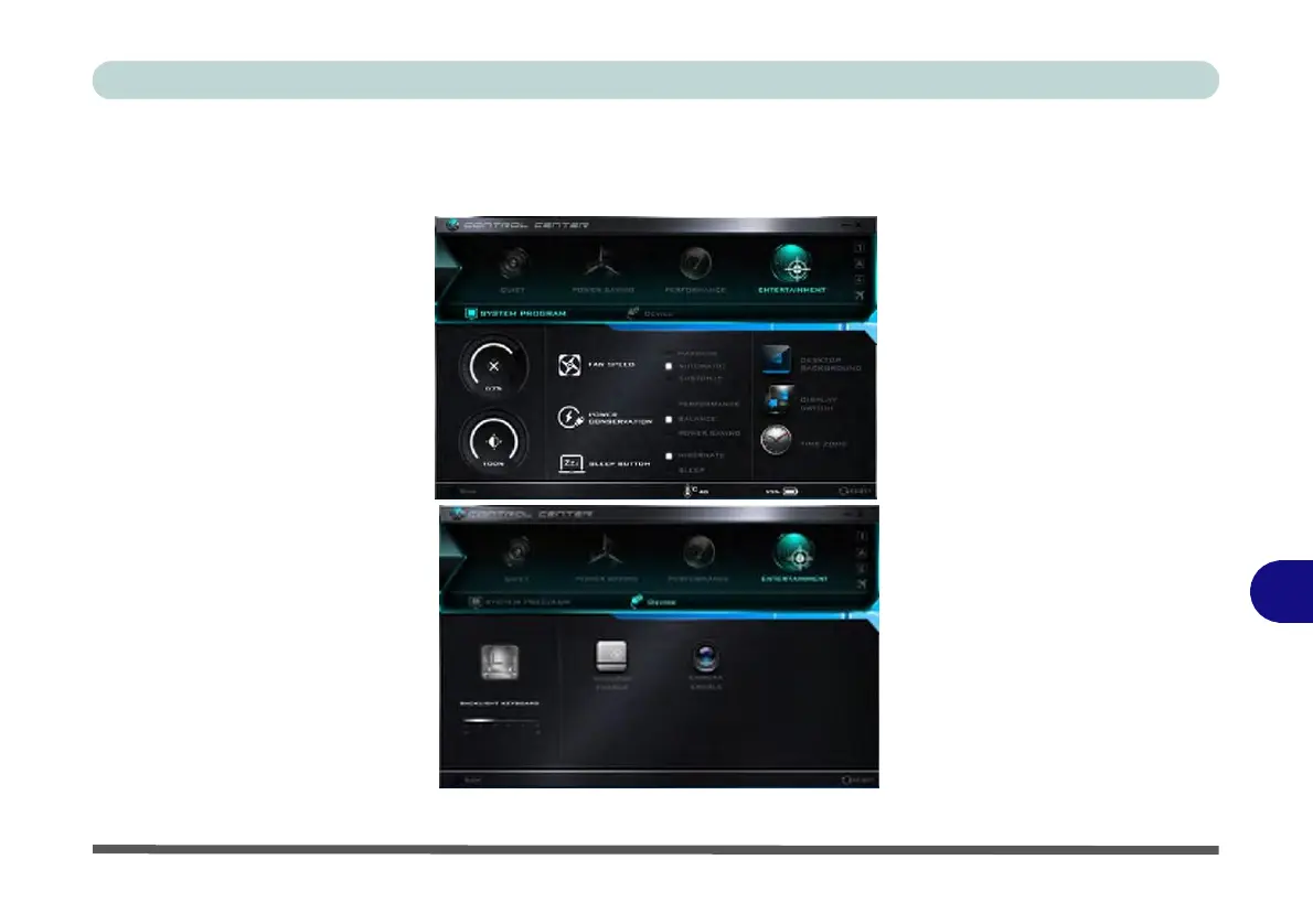 The Control Center contains 2 menu headings (System Program and Device) under the Power Modes.
