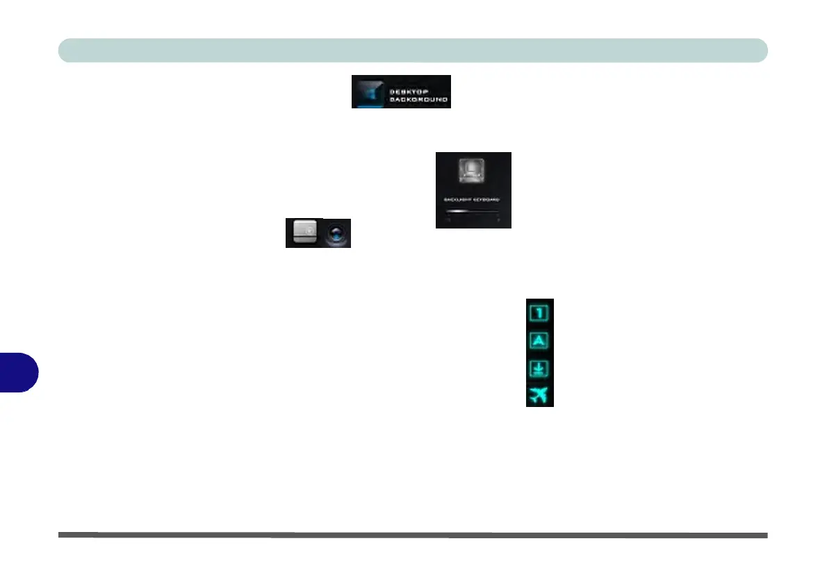 Click either of these buttons to toggle the TouchPad or camera module’s power status. The icon will appear