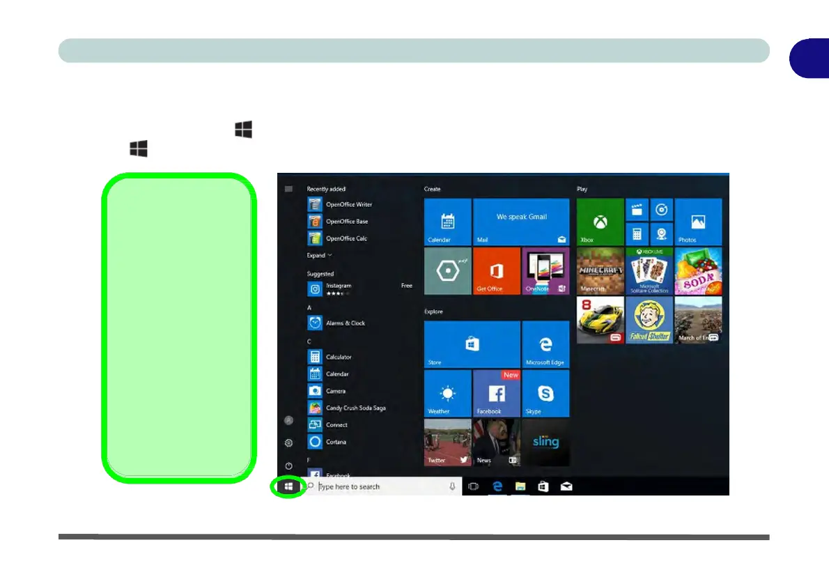Menu by clicking the icon in the taskbar in the lower left corner of the screen (or by pressing the Windows