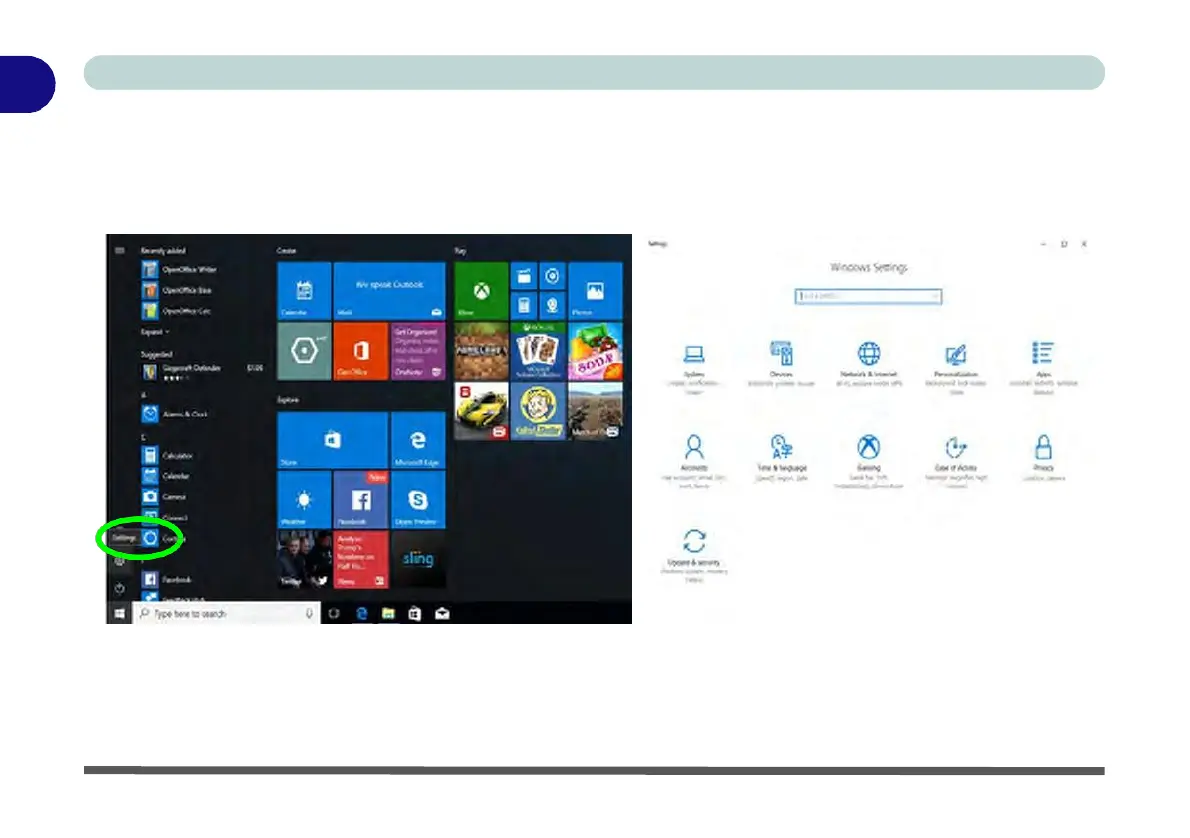 The Settings item in the Start Menu (and also as an App) gives you quick access to a number of system settings
