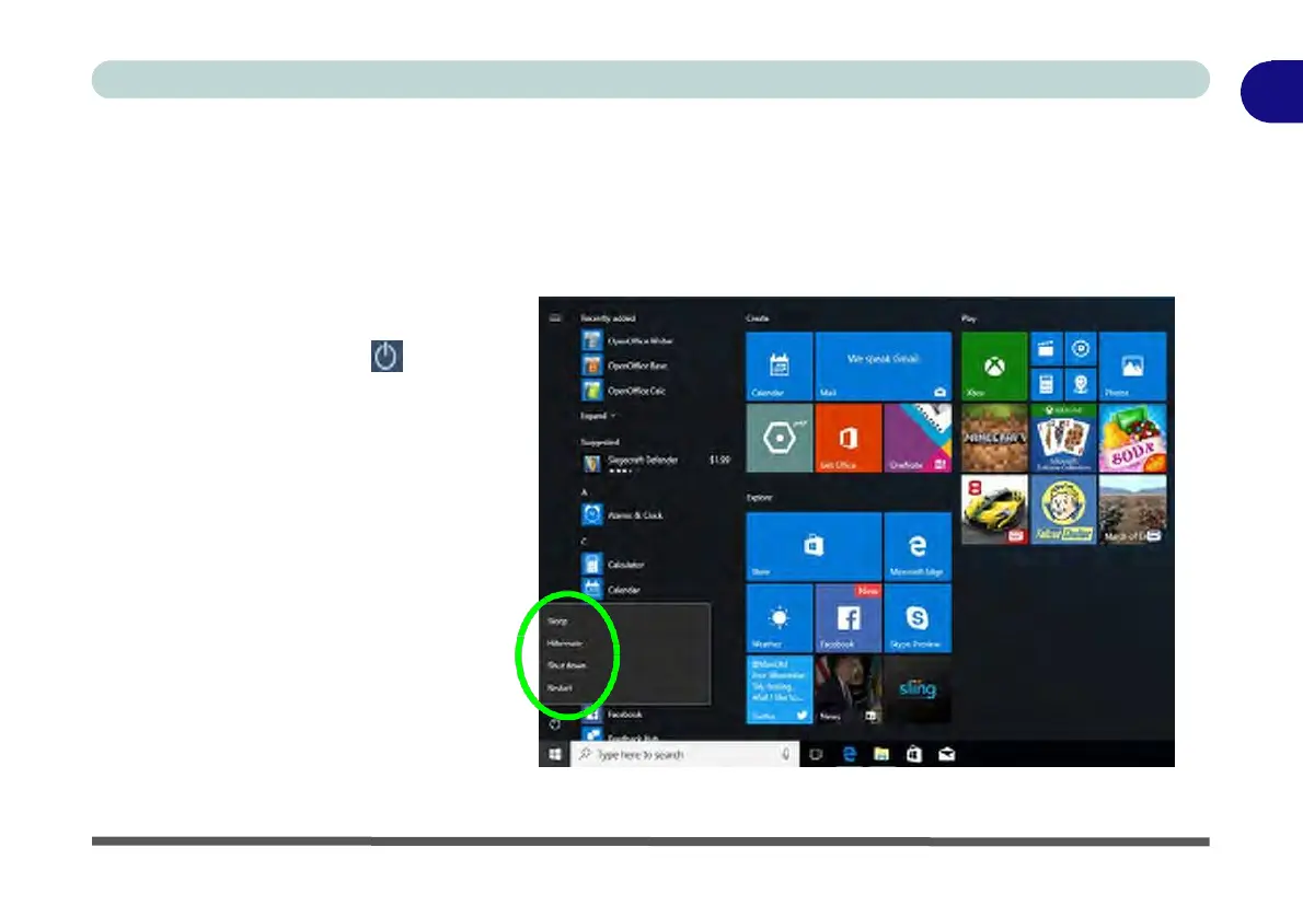 the menu - see page 1 - 32). To fully control all the power options (including Hibernate mode) go to the Power