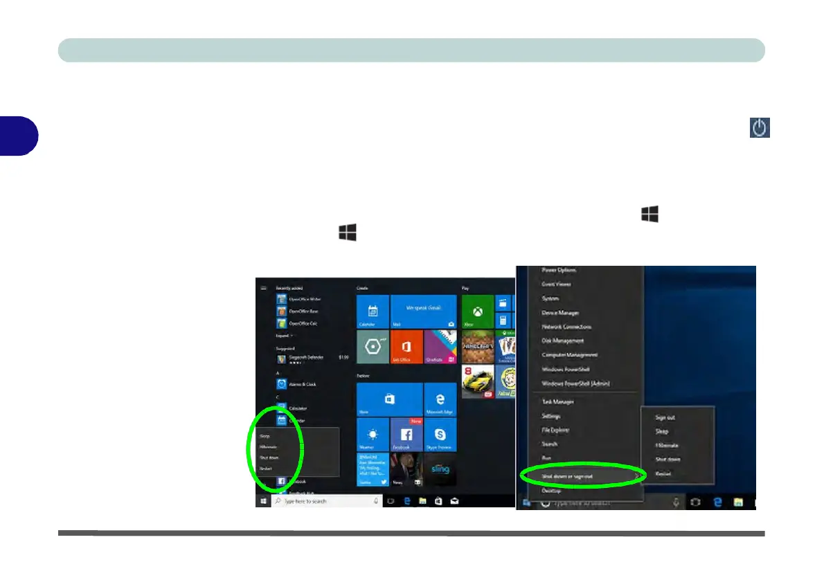 Windows logo + X key combination) to Sign out, Sleep, Hibernate, Shut