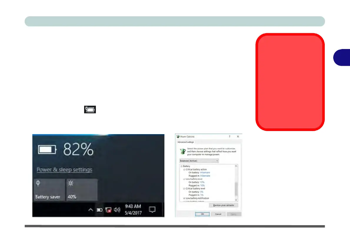 taken (e.g. Shut down, Hibernate etc.), and set critical and low battery levels from