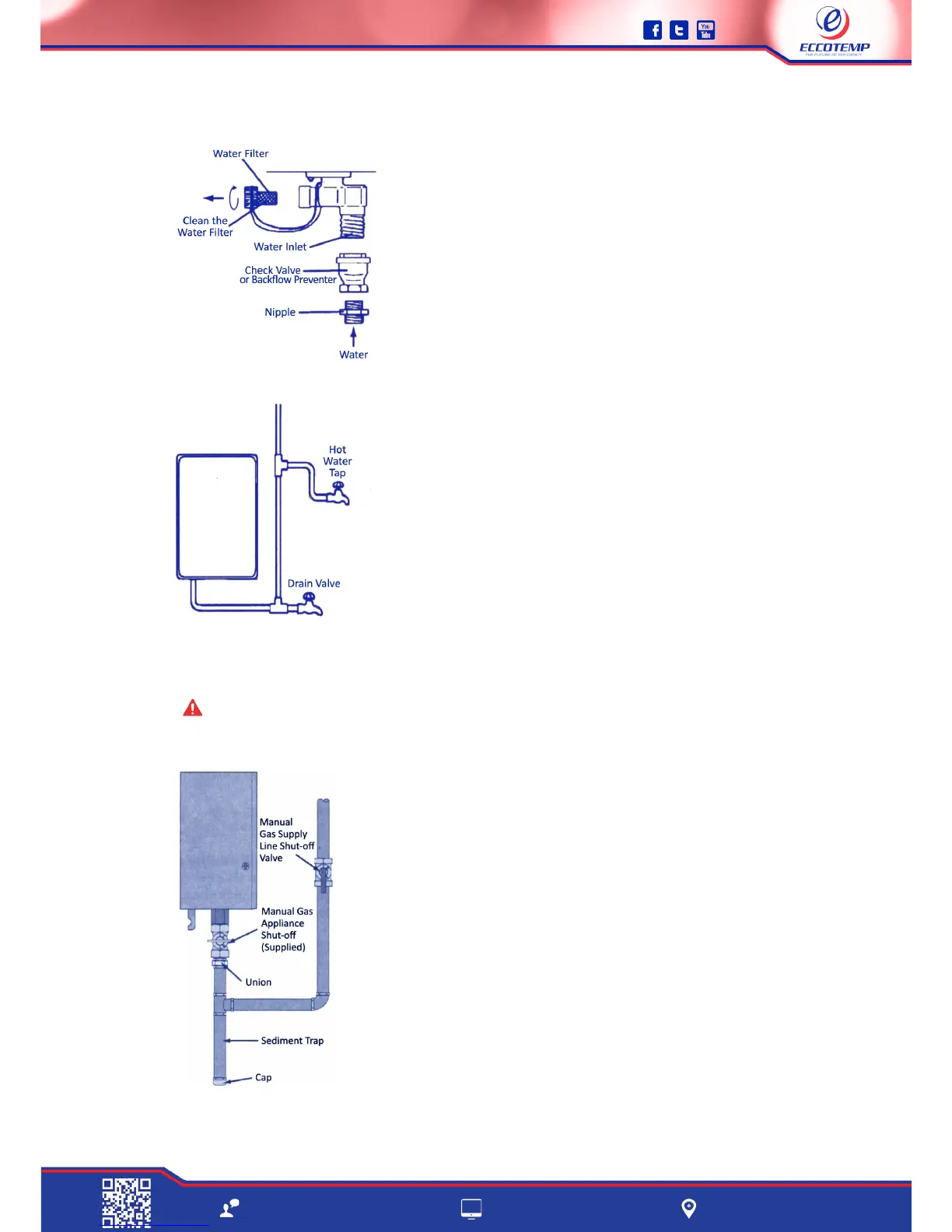 NOTICE: The pipes MUST be completely drainable. If the hot water faucets are located at a point higher
