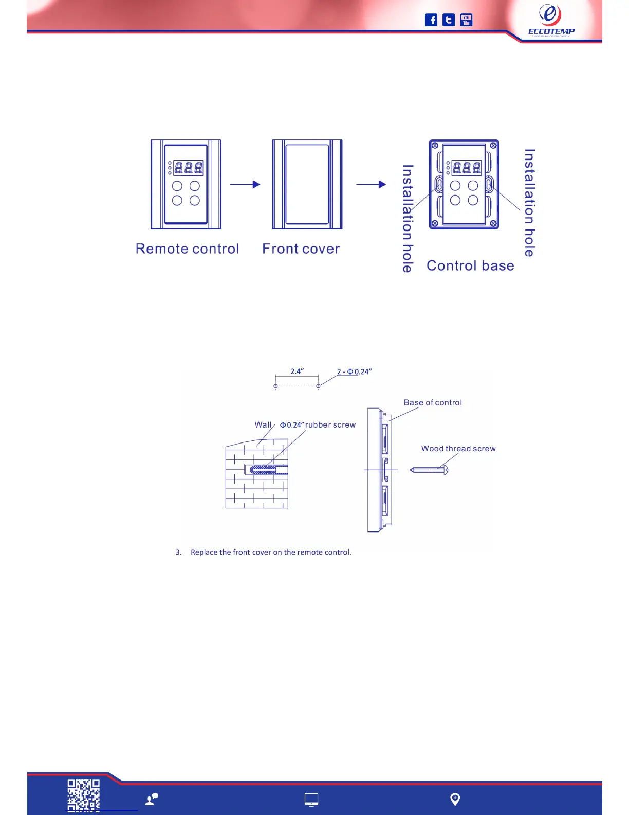 the holes. Place the remote control against the wall, align the holes of control with the holes in the