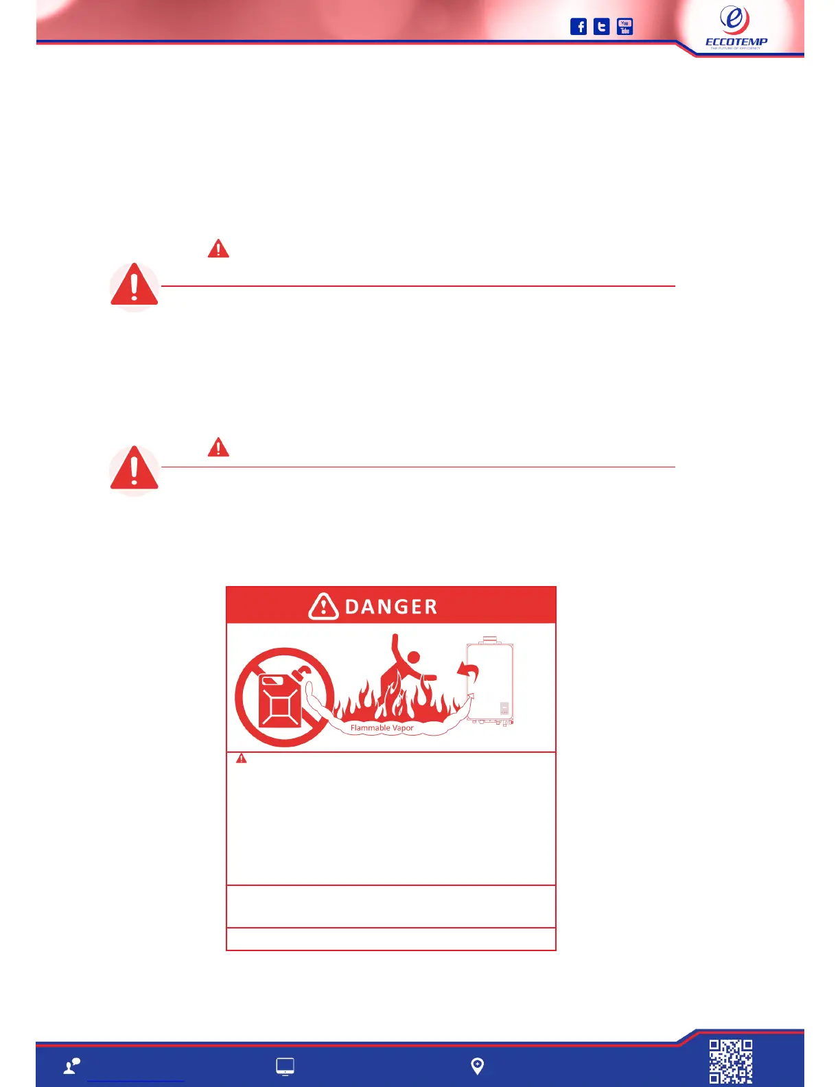 Do not Install water heater where flammable products will be stored or used