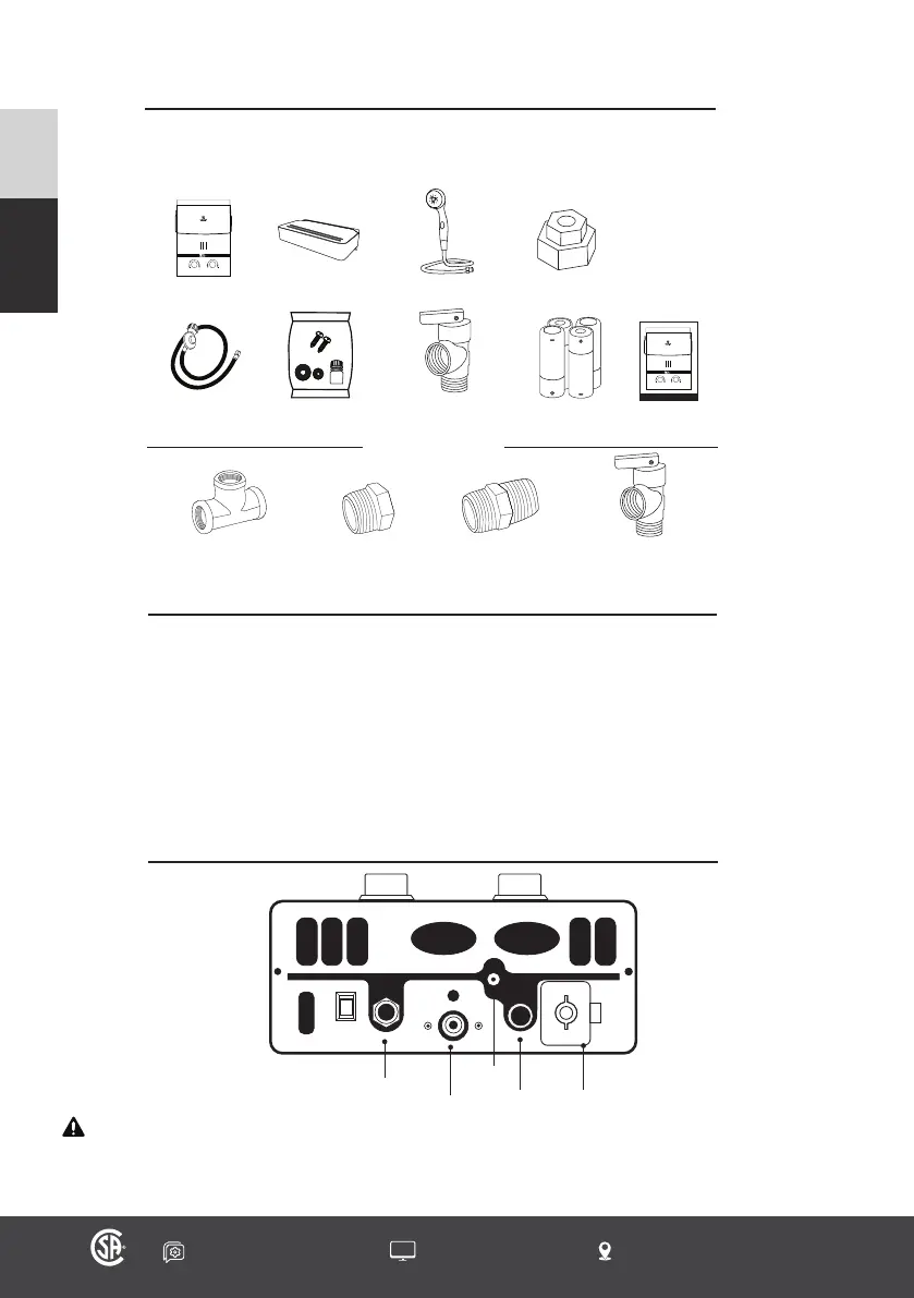 • The tankless water heater must be installed on a re retardant area, and must be away from all