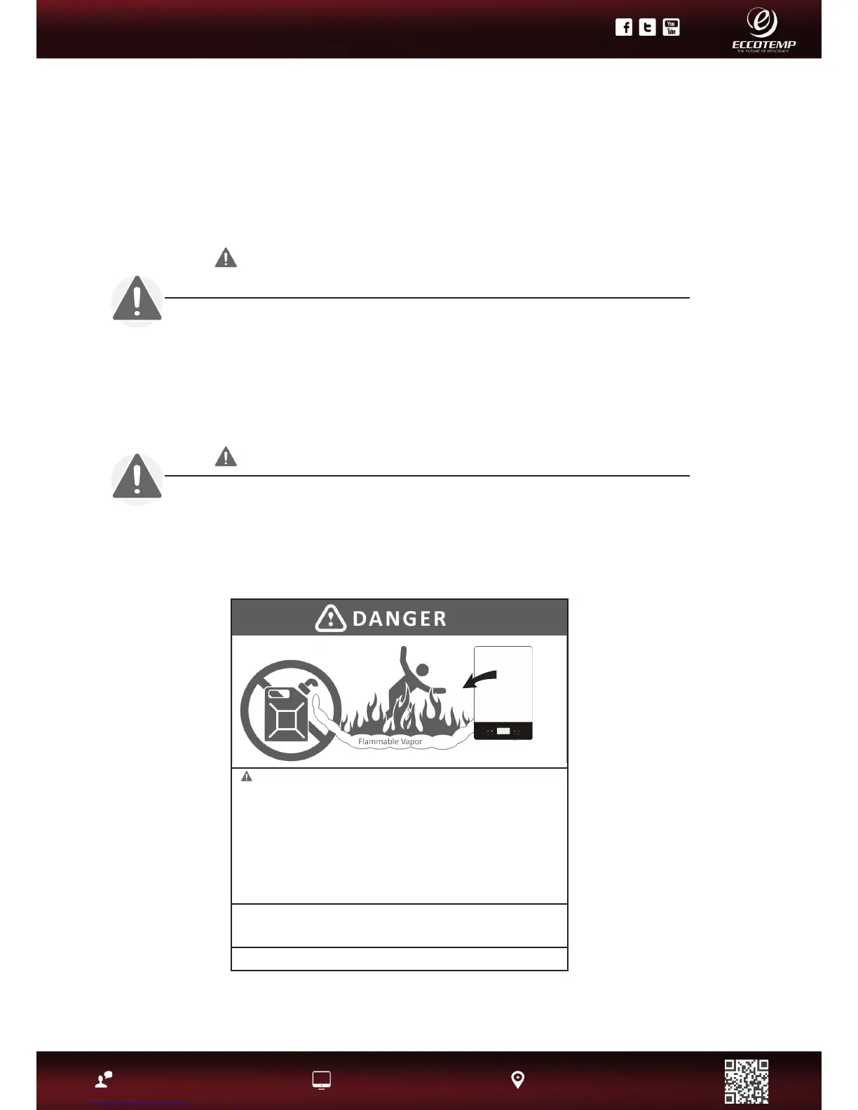 avoid the risk of re, explosion, or asphyxiation from carbon monoxide, never