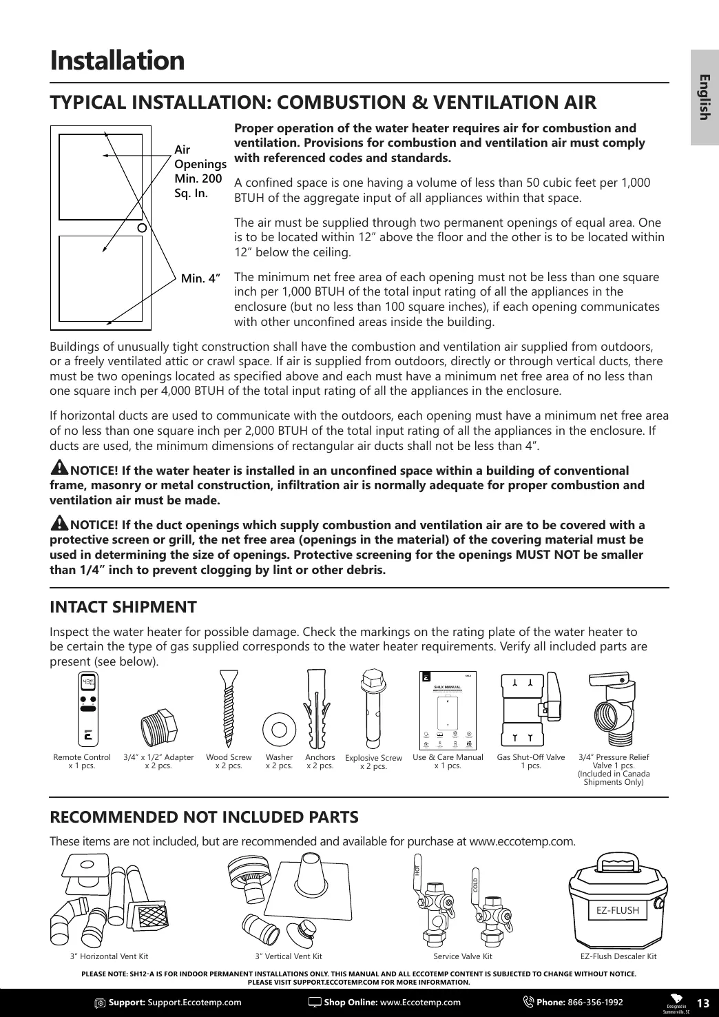 A IS FOR INDOOR PERMANENT INSTALLATIONS ONLY. THIS MANUAL AND ALL ECCOTEMP CONTENT IS SUBJECTED TO CHANGE WITHOUT NOTICE.