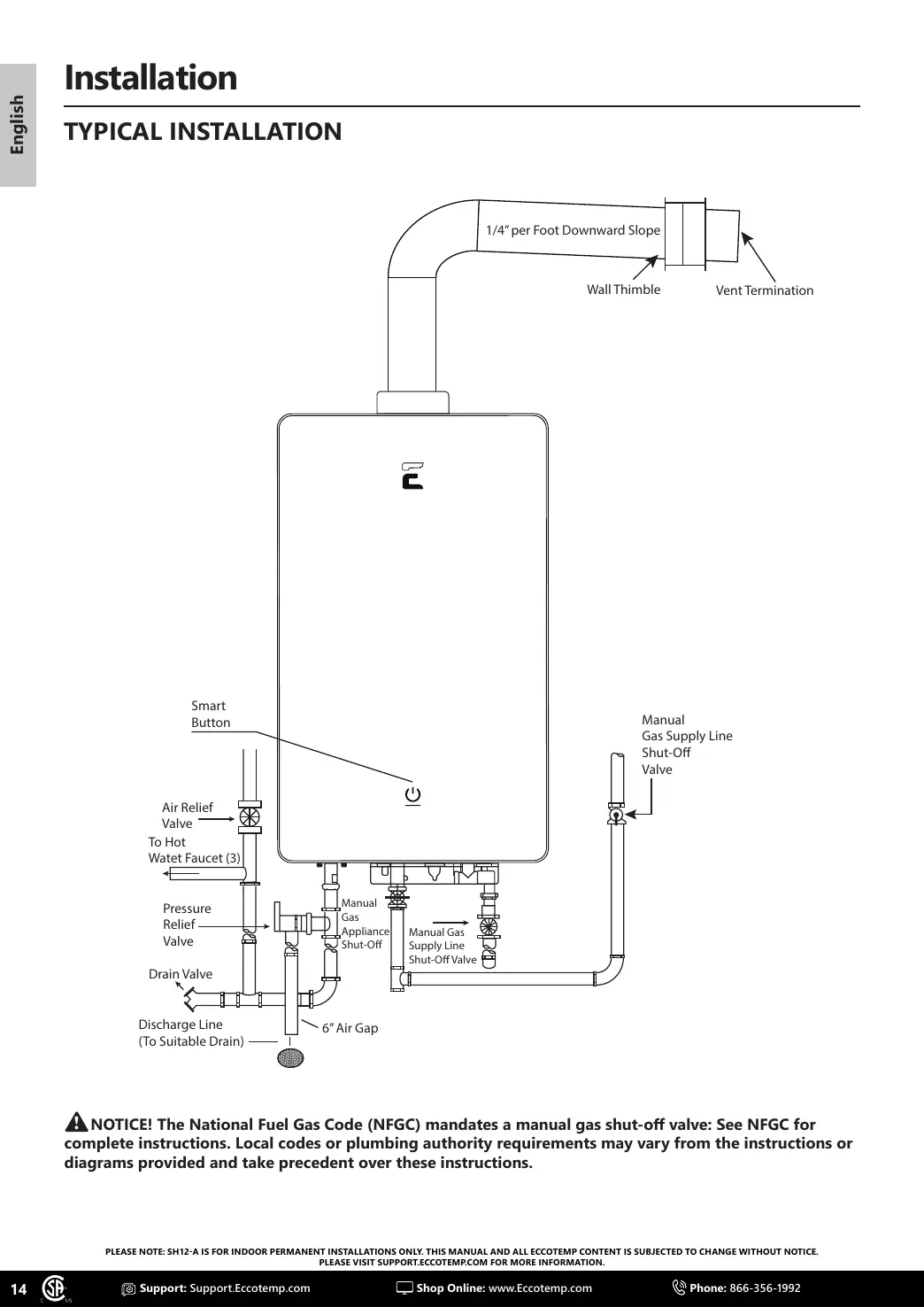 A IS FOR INDOOR PERMANENT INSTALLATIONS ONLY. THIS MANUAL AND ALL ECCOTEMP CONTENT IS SUBJECTED TO CHANGE WITHOUT NOTICE.