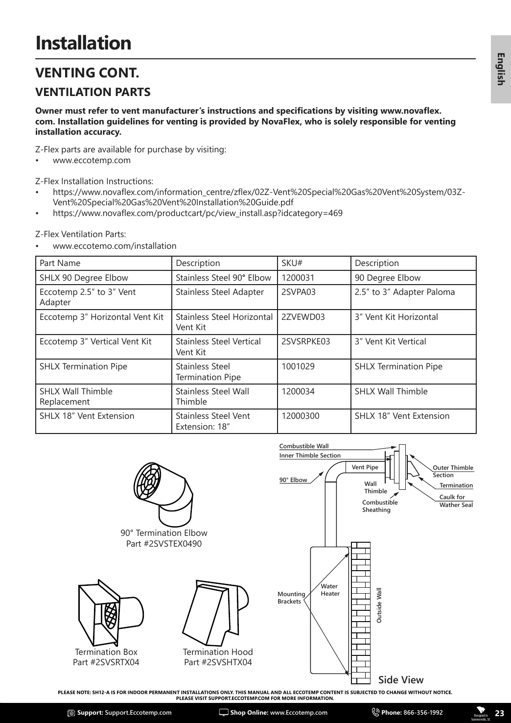 A IS FOR INDOOR PERMANENT INSTALLATIONS ONLY. THIS MANUAL AND ALL ECCOTEMP CONTENT IS SUBJECTED TO CHANGE WITHOUT NOTICE.
