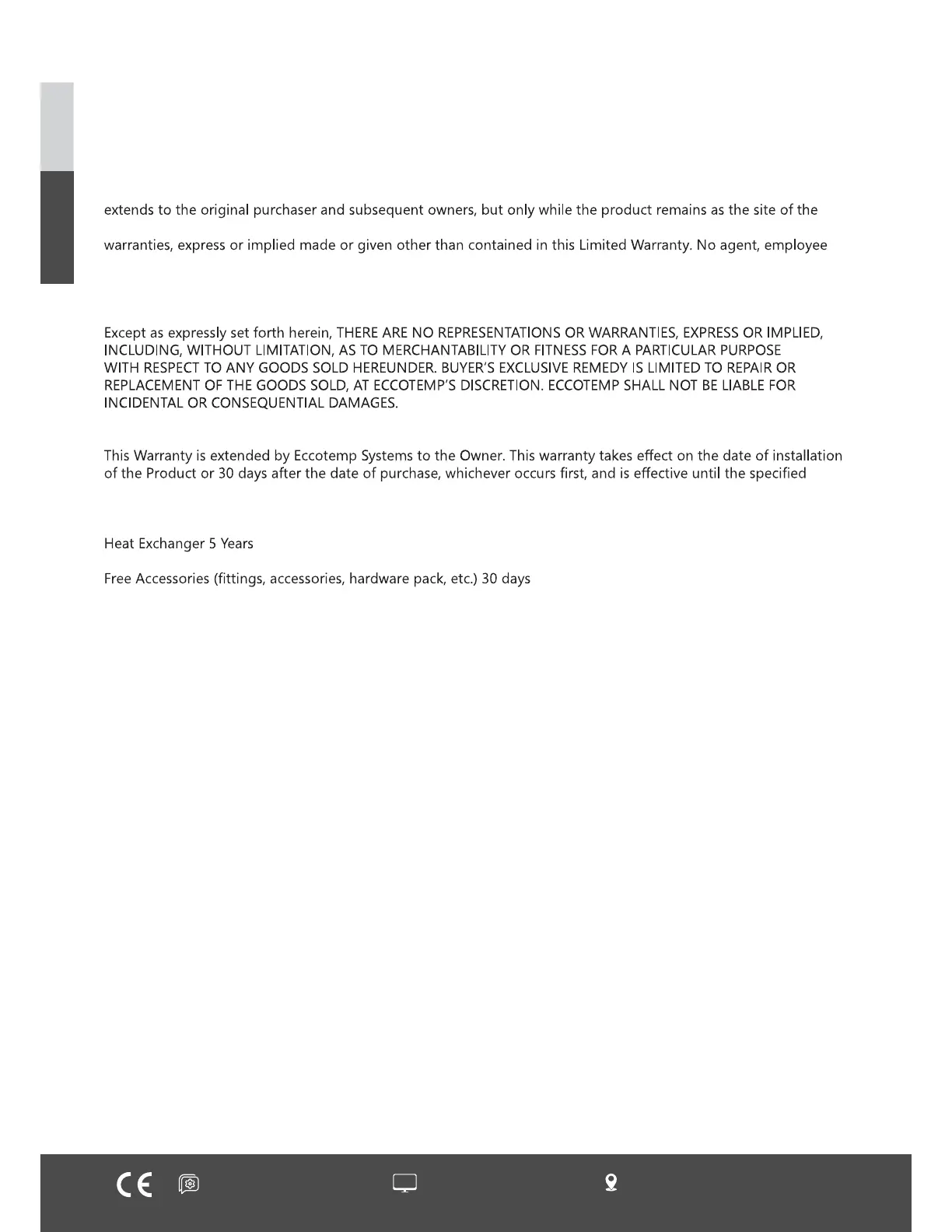 Within the Þrst 45 days of purchase, Eccotemp will cover all ground shipping costs for warranty related issues.