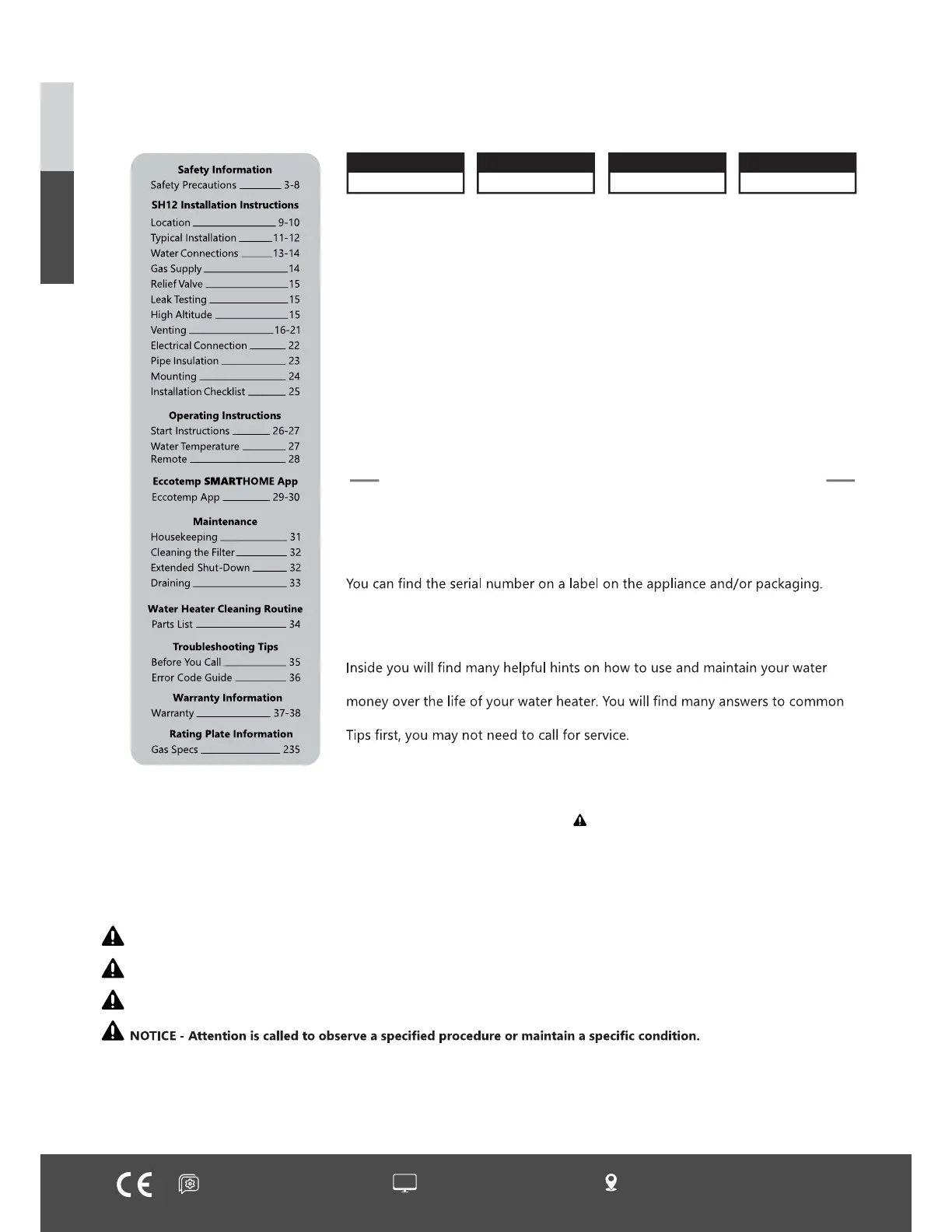 PLEASE NOTE: SH12 IS FOR INDOOR PERMANENT INSTALLATIONS ONLY. THIS MANUAL AND ALL ECCOTEMP CONTENT IS SUBJECT TO CHANGE WITHOUT