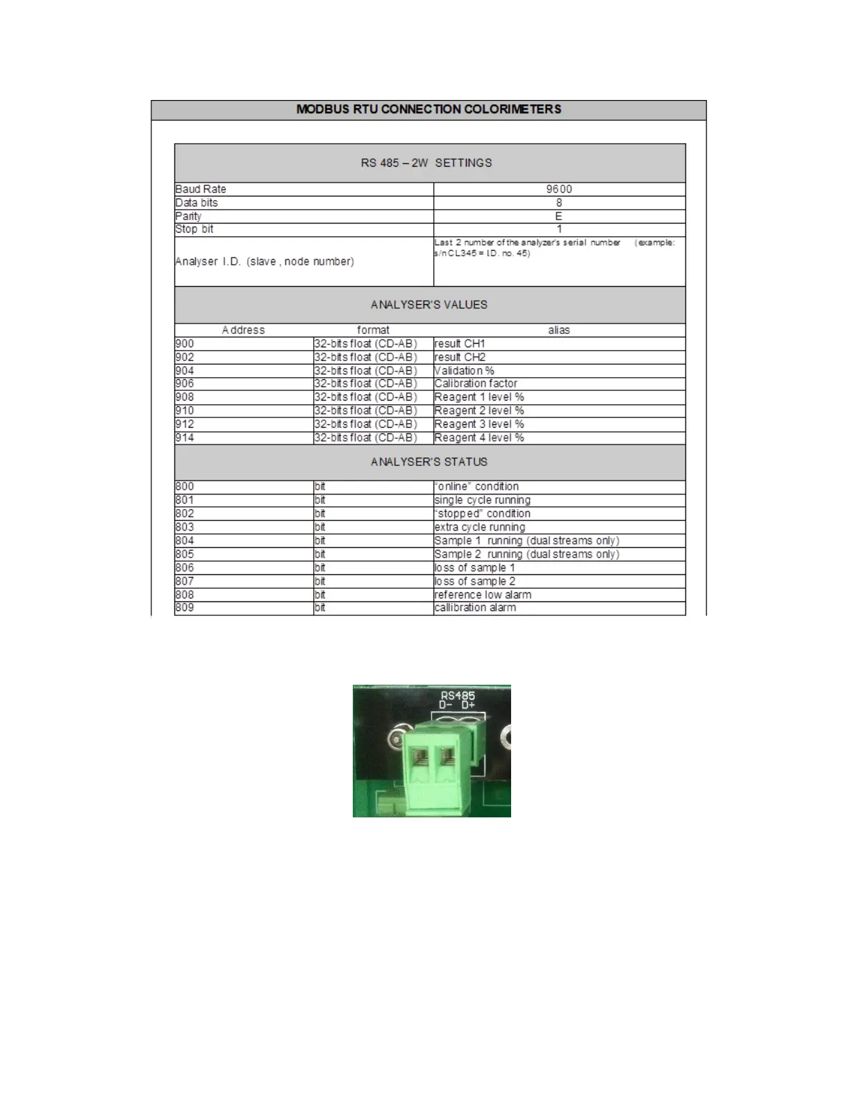 Modbus protocol connection (Modbus RTU). This module is plugged on the control board. Use