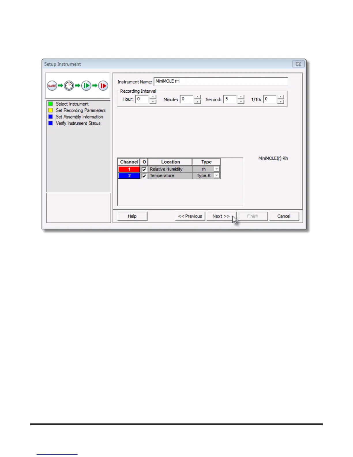 6) Set instrument name, recording interval and if the sensor is to be ON or OFF.