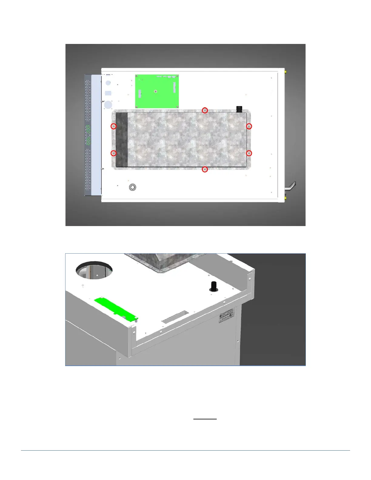 7) Replace the 6 mounting screws that secure the heater to the top panel. Making sure the 2 short screws